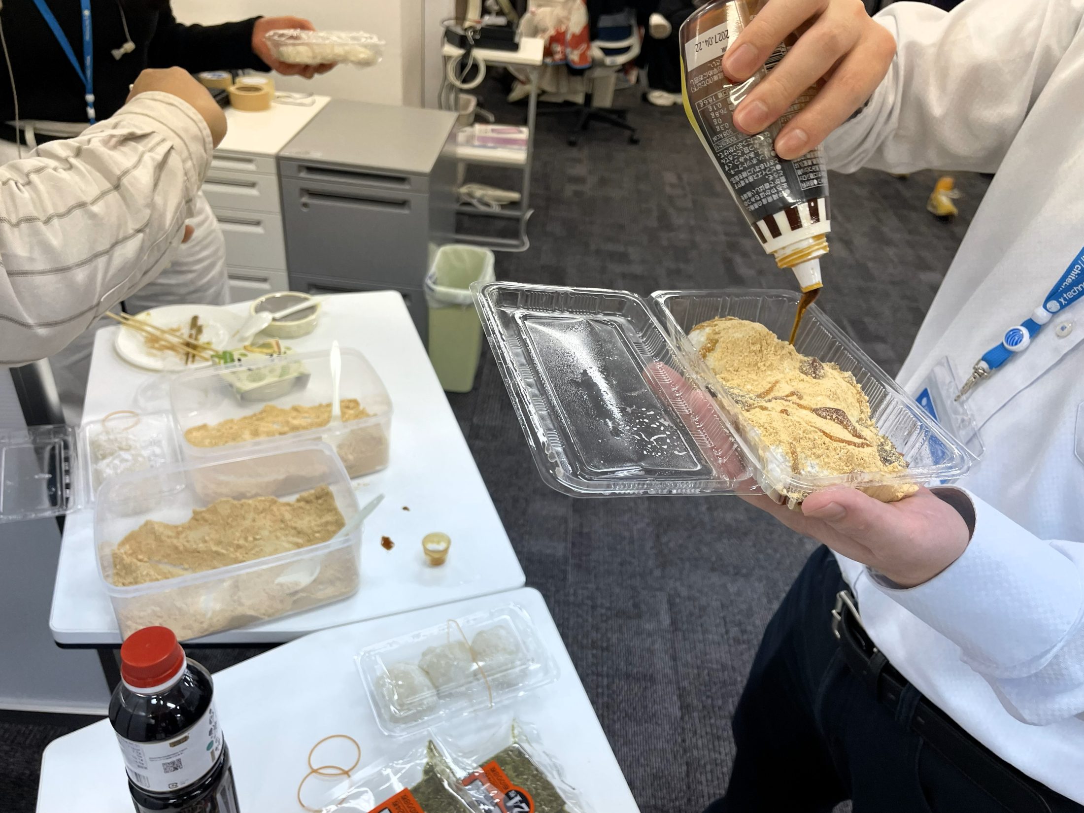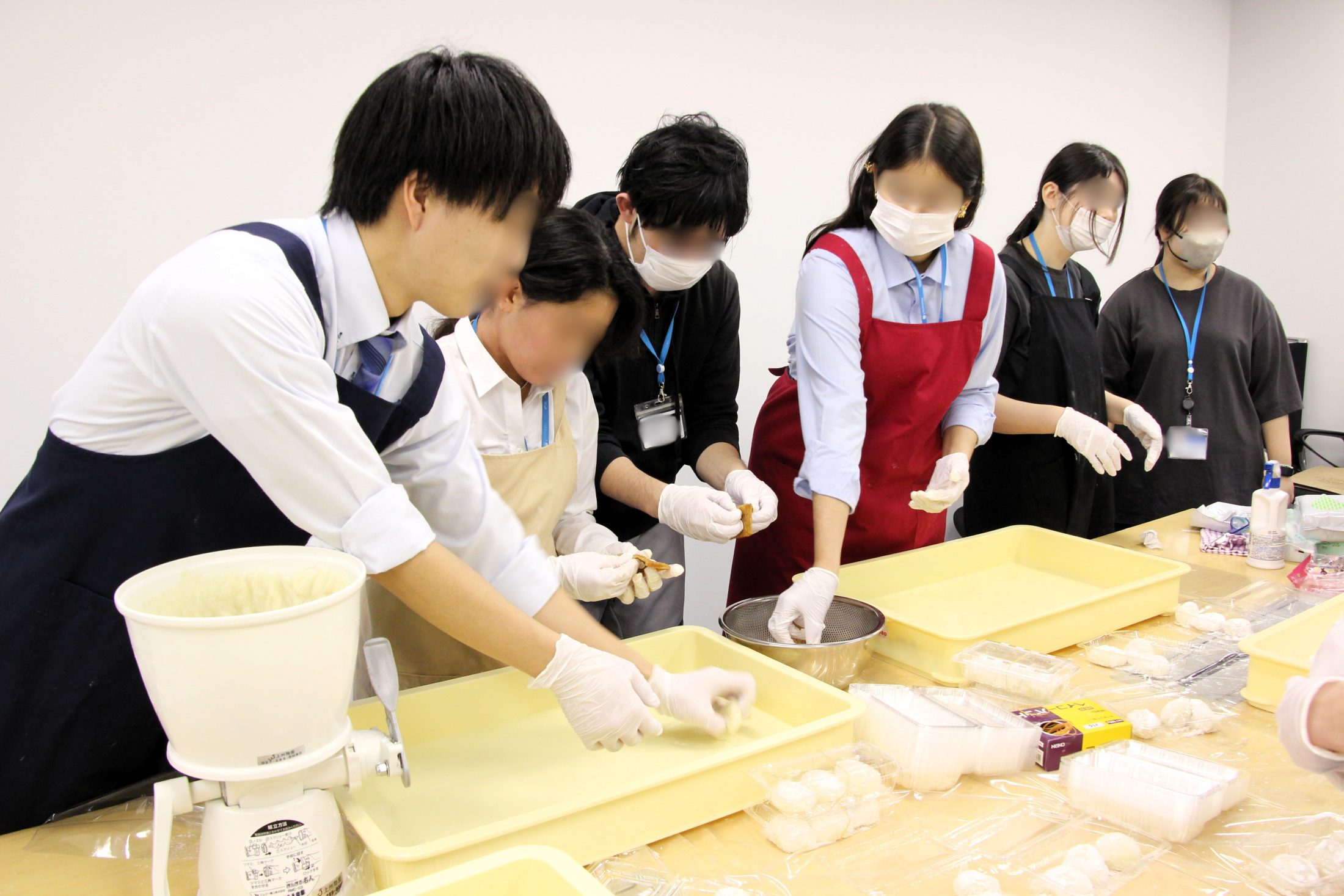社内で有志が集まり、おもち作りが行われます。